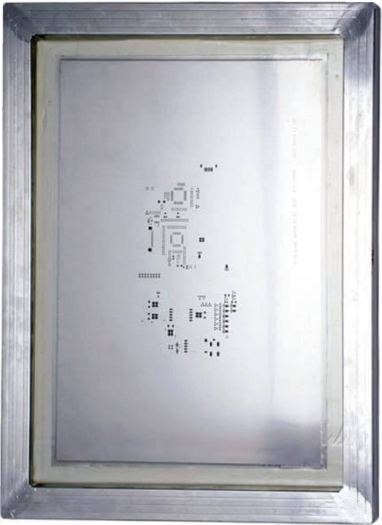 Stencil , é uma lamina de aço inox muito fino tencionado sobre um quadro de alumínio. A lamina de aço inox é submetido a um equipamento para fazer o recorte a laser conforme o desenho da placa.