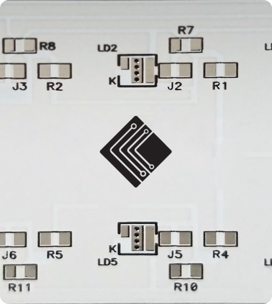 Limpar a placa de circuito impresso na cor branca é muito difícil porque não se vê as manchas. No entanto, legenda de componentes impressa na cor preta sobre a cor branca, se destaca e fica atraente!